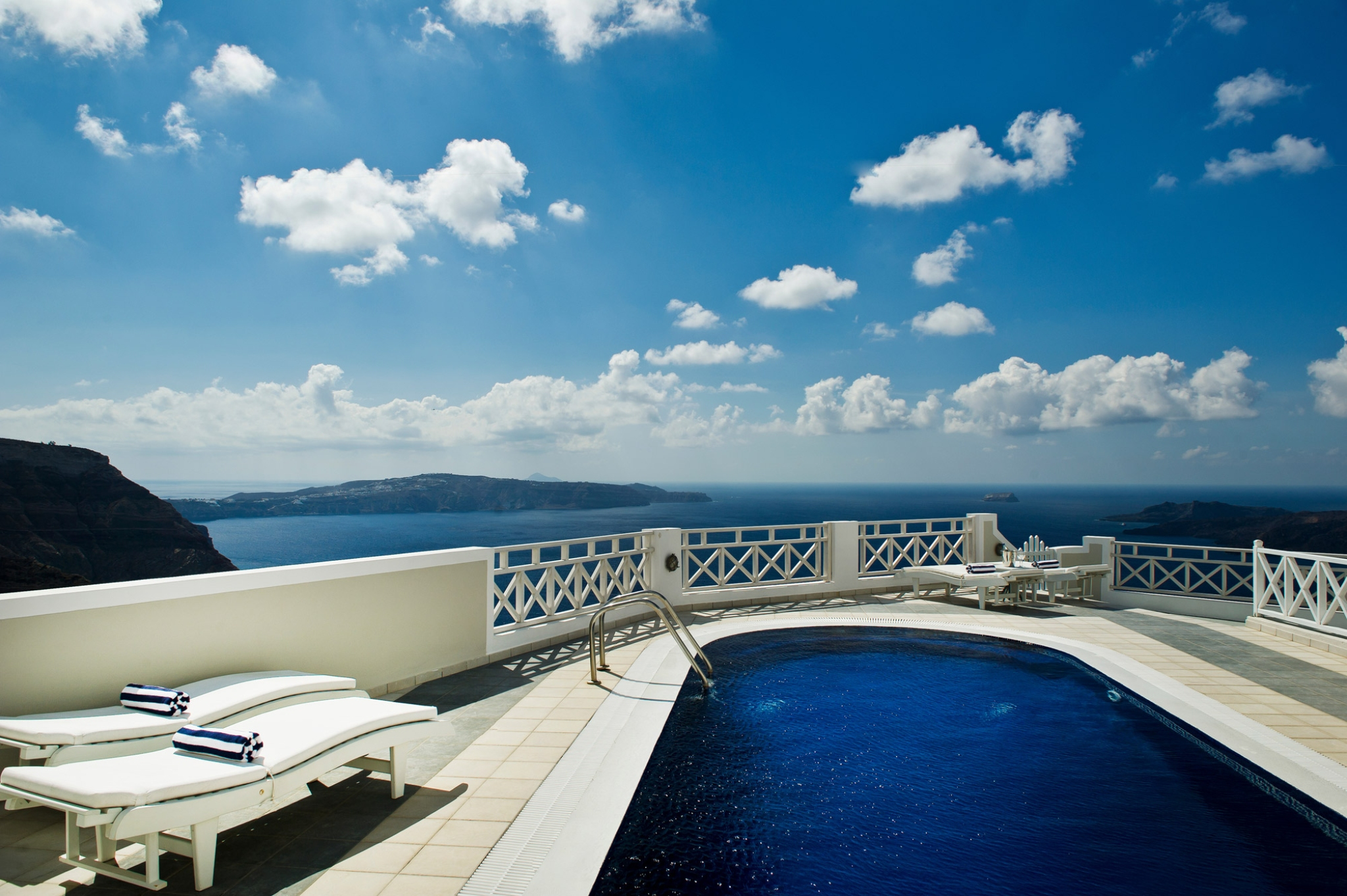 Enjoy panoramic, awe-inspiring views of the Caldera cliffs, the volcano, and the shimmering azure Aegean Sea. Ianthi Villa combines minimalist, modern décor with earthy-toned furniture and striking artwork, creating a warm and inviting atmosphere. Spacious indoor and outdoor areas offer comfort and style throughout this private, two-level retreat.