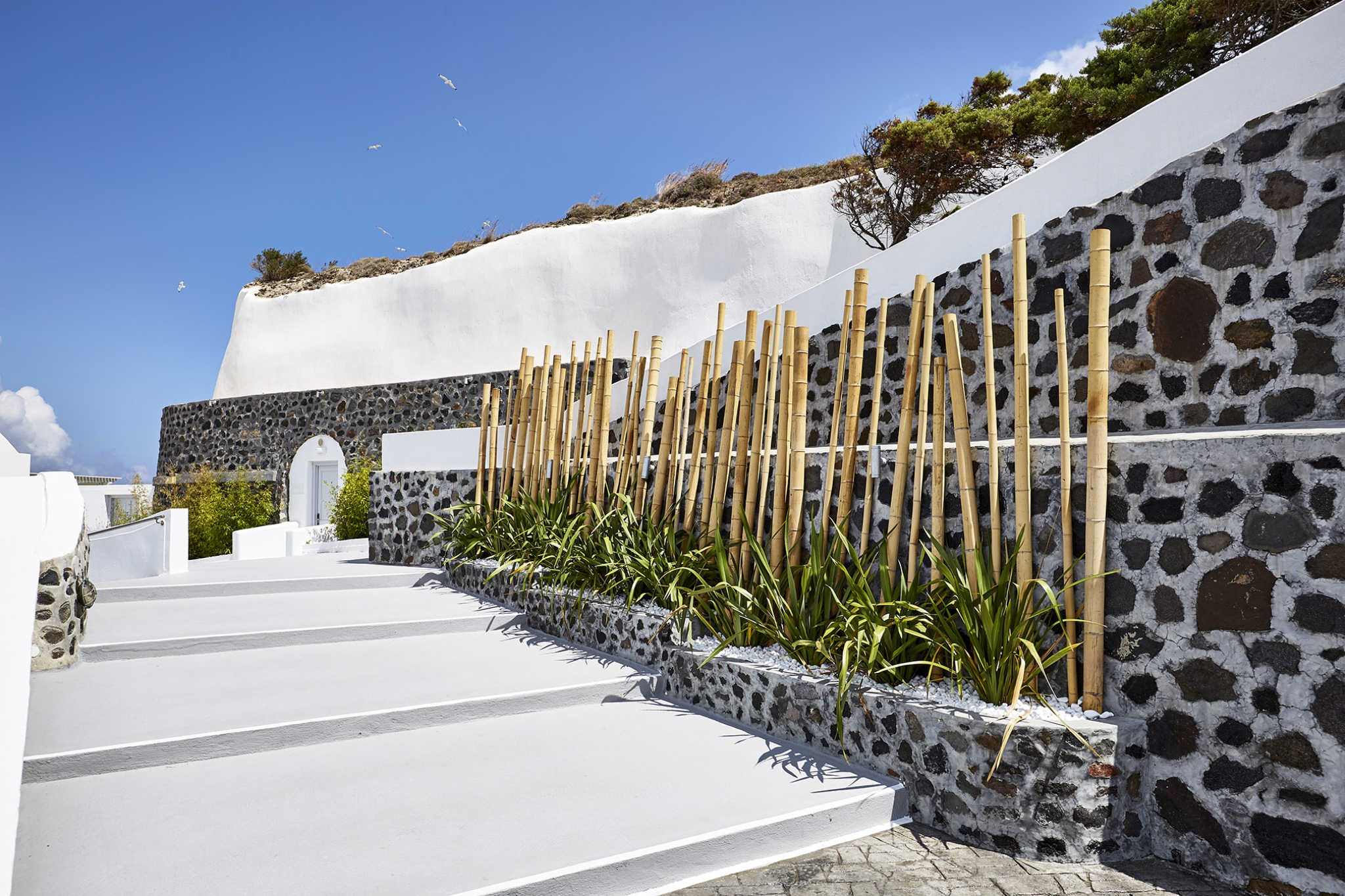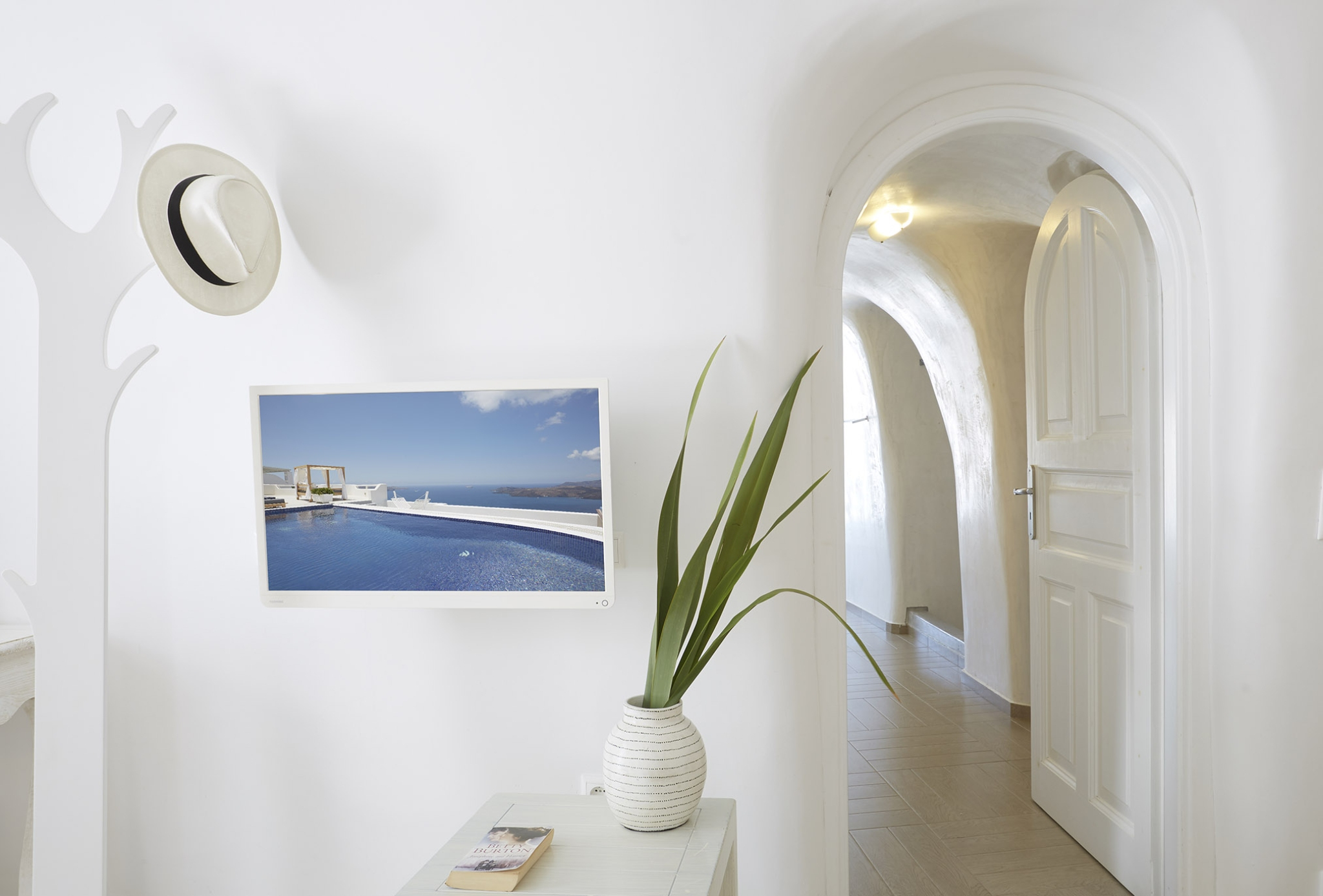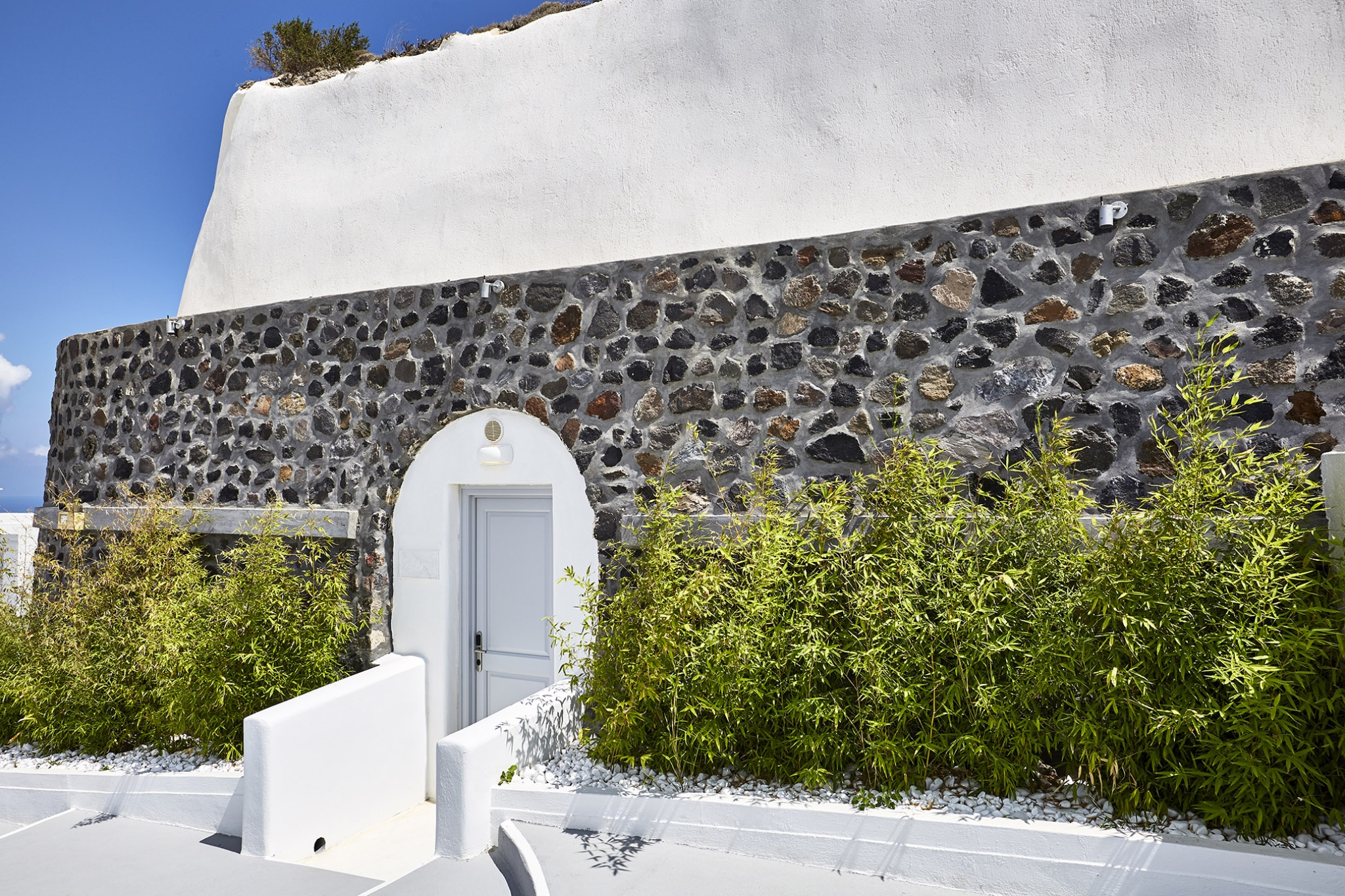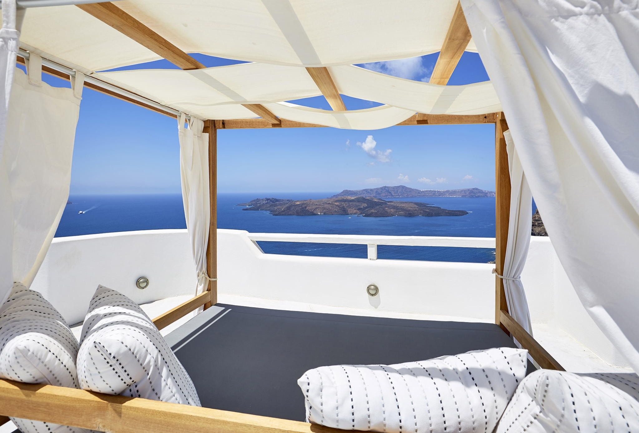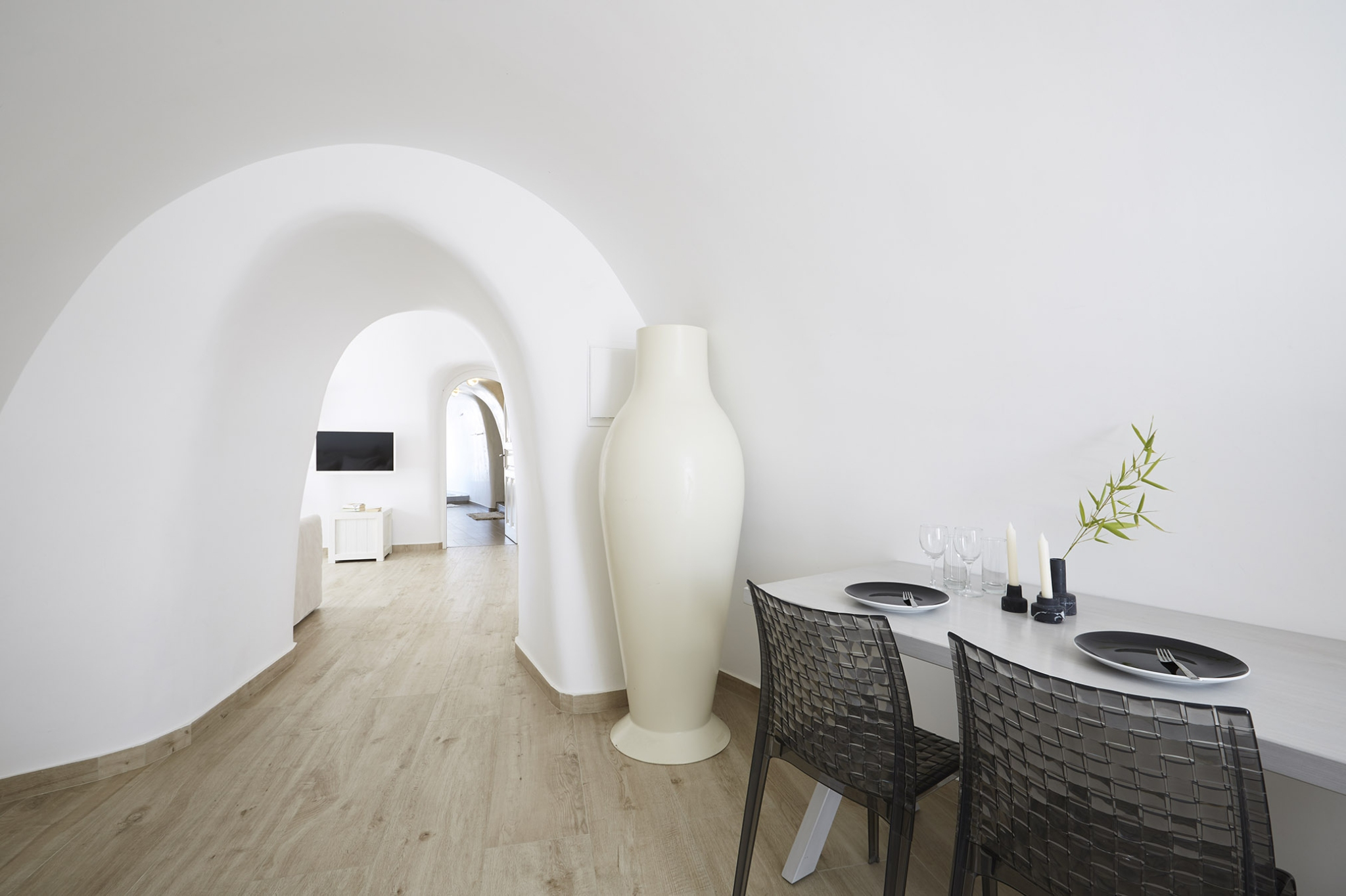 Luxury abounds in the Superior Honeymoon Villa, a sanctuary radiating unparalleled sensuality. Designed in the traditional Cycladic style, its smooth, curvy white walls and domed ceilings embody minimalist elegance, creating the perfect setting for an unforgettable romantic escape.